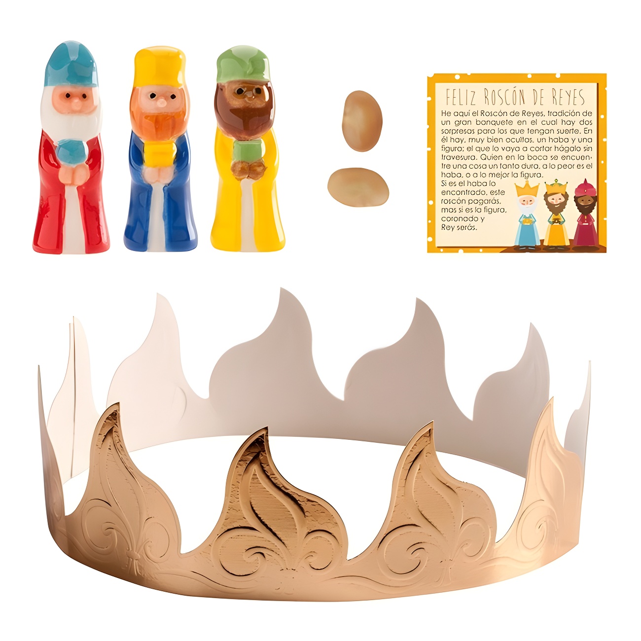 10 x Kit para Rosca de Reis: coroa, fava, rei e cartão