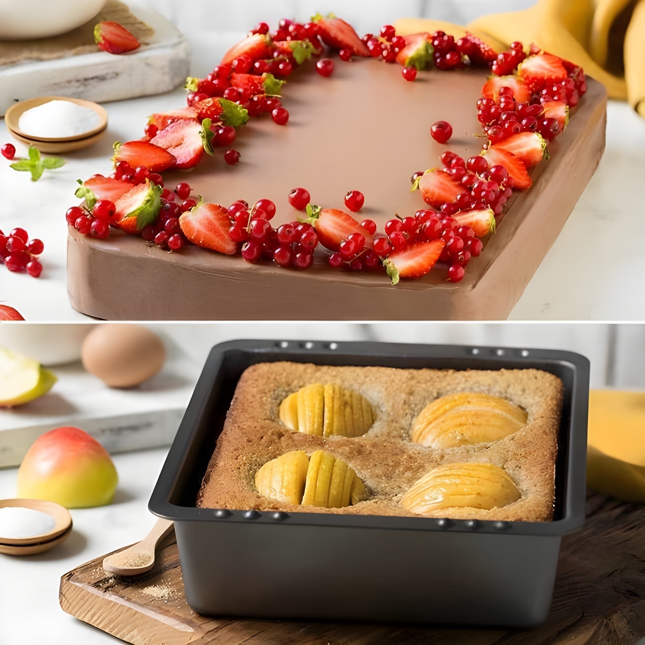 Molde ideal para receitas doces e salgadas. Os pequenos orifícios nas pegas do molde permitem-lhe sobrepor outro igual, utilizando-o como tampa.