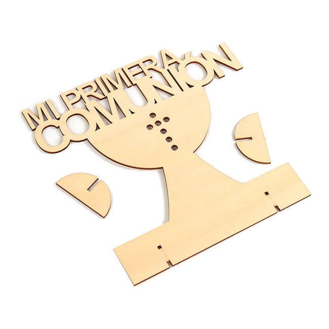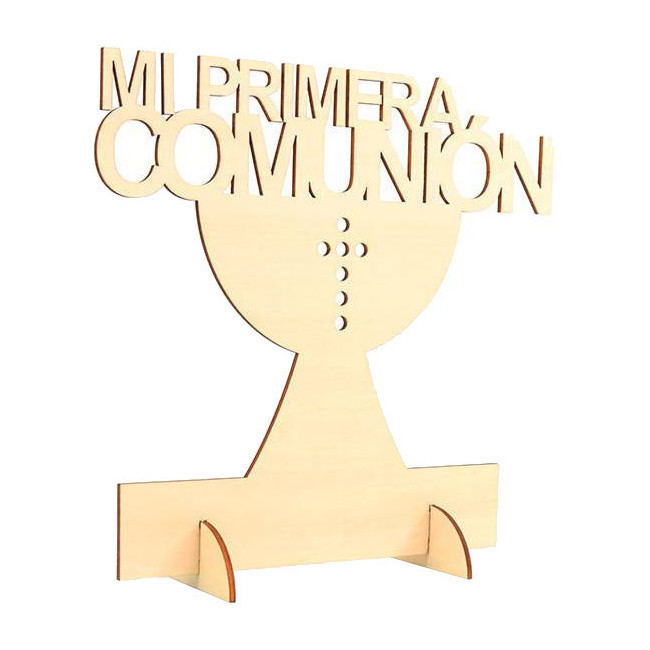 Placa ou centro de mesa em madeira para decorar a entrada ou a mesa de doces da sua Primeira Comunhão.