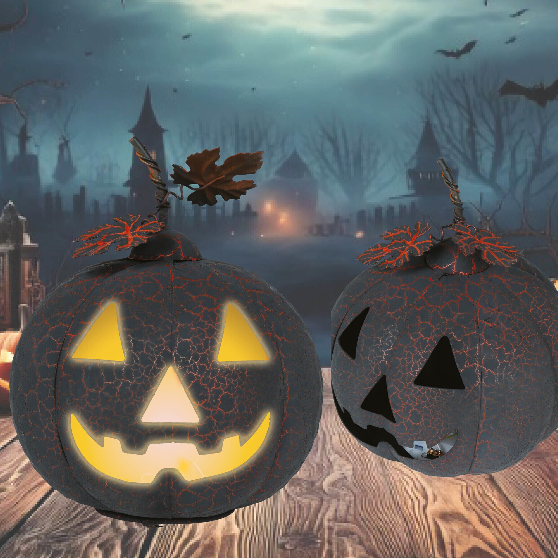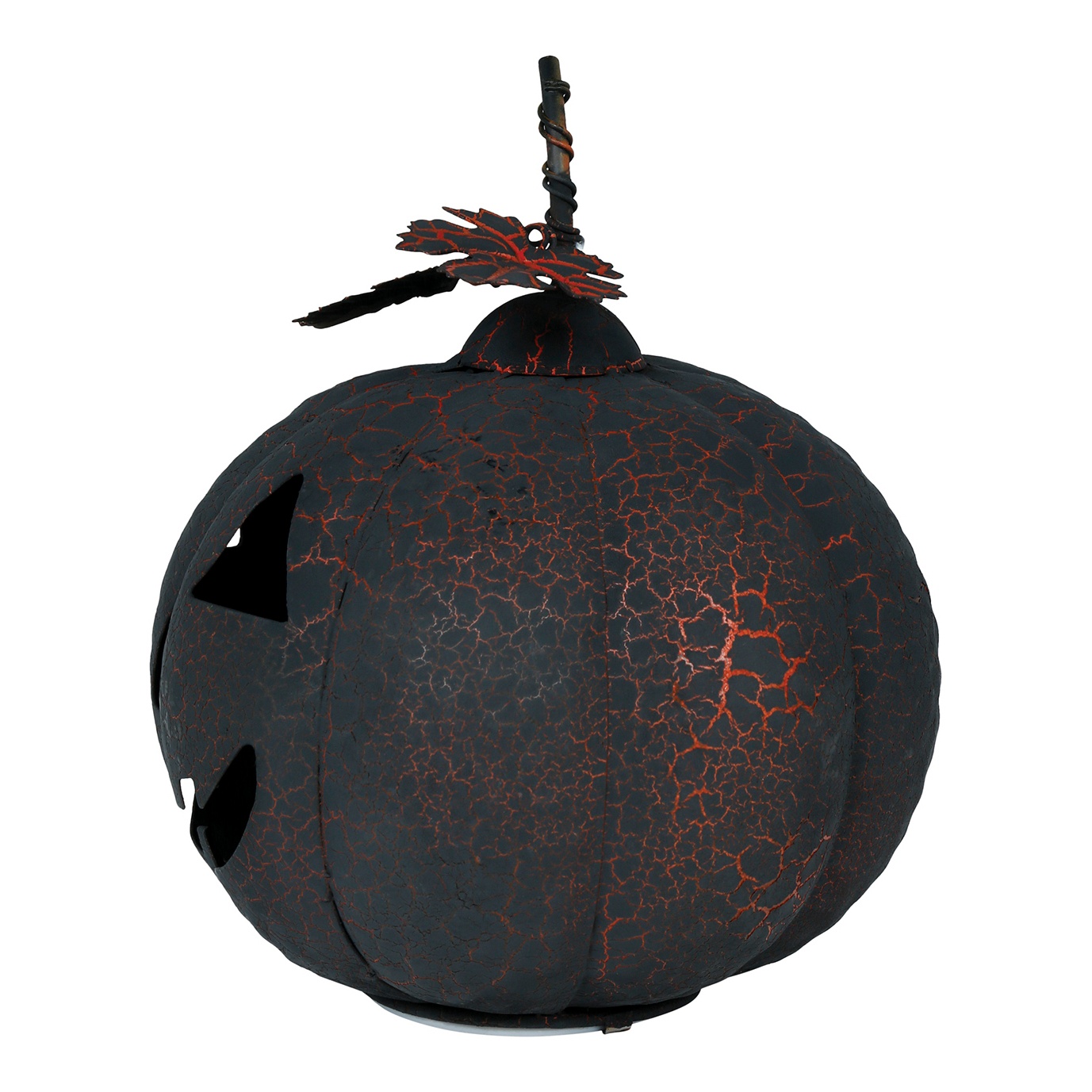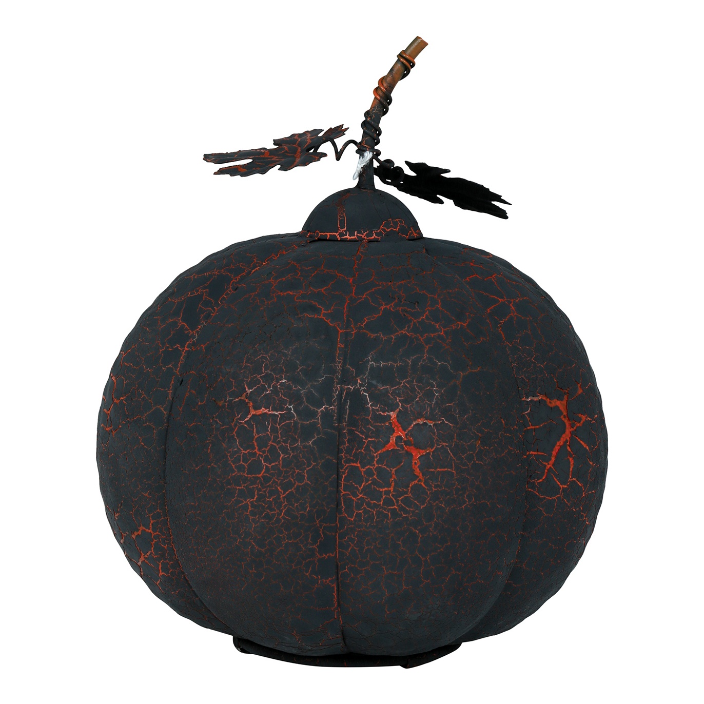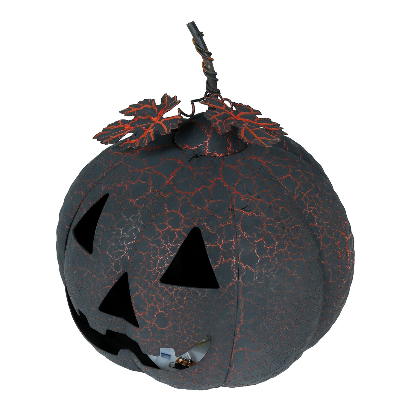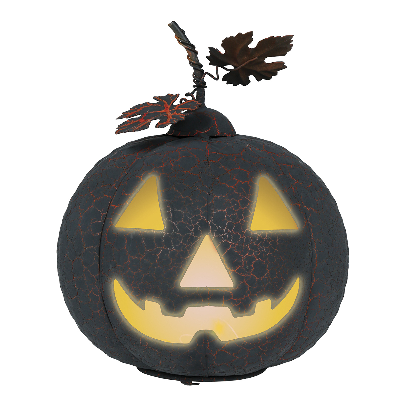 Abóbora preta e laranja de metal com luz de 20 cm