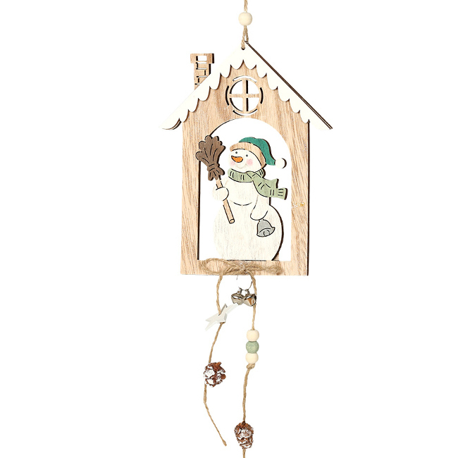 Pendente casa de boneco de neve em madeira 14 x 18 cm