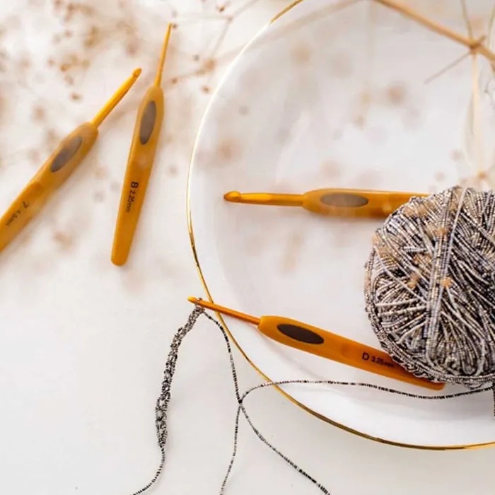 - A ponta permite realizar trabalhos de qualidade, sua terminação homogênea de cor dourada fabricada em metal é realmente suave e permite trabalhar as lãs e fios com suavidade.