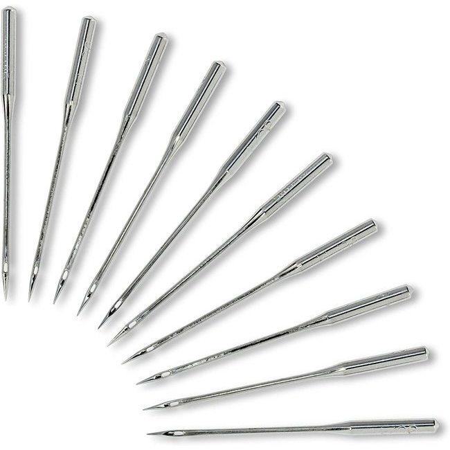 - Agulhas universais para máquinas de costura para tecidos firmes.