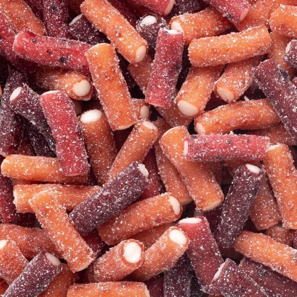Ingredientes: açúcar, xarope de glucose-frutose, amido de milho; sumos 7% (framboesa, groselha, morango de concentrado), xarope de açúcar invertido, proteína de batata, gordura de palma, dextrose; humectante: glicerina; acidificante: ácido cítrico, ácido lático, ácido málico; amido de batata modificado, frutos: (groselha preta: 1 % de groselha preta, morango 1%, framboesa 1%), maltodextrinas; regulador de acidez: malatos de sódio, lactato de sódio, citratos de potássio; espessante: goma arábica; aromas, fécula de batata; concentrado de vegetais: cenoura, groselha preta, hibisco, tomate, abóbora, rabanete, maçã, sal.