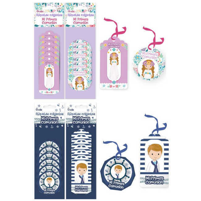 Cartões suspensos "A minha primeira comunhão" sortidos - 6 unid.