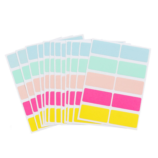 Autocolantes coloridos para escrever em retângulo - 12 folhas