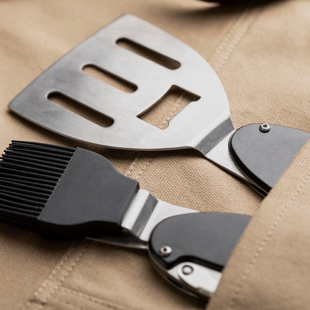 - Inclui muitos bolsos para os diversos utensílios, com costuras reforçadas.