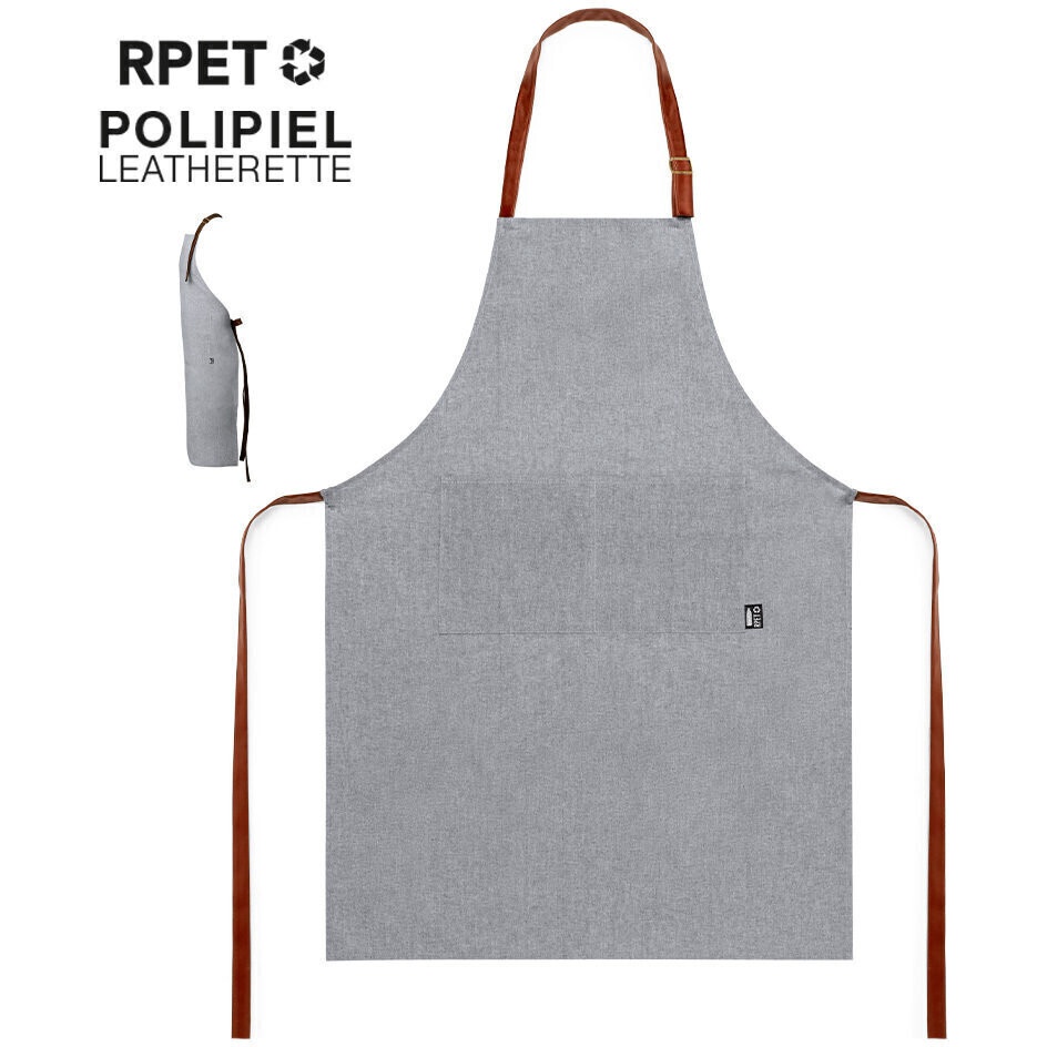 - Avental da linha nature em material RPET, elaborado a partir de plástico reciclado.
