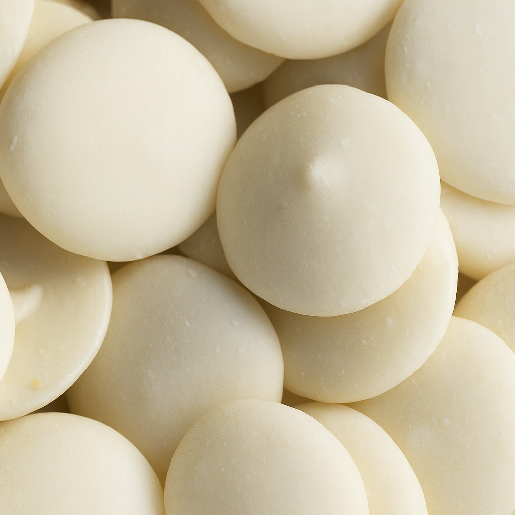 Ingredientes Branco brilhante: Açúcar, gordura vegetal parcialmente hidrogenada (palmiste), soro de leite em pó, emulsionante (E-322, E-472C,E-492).