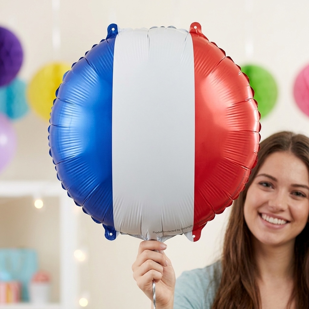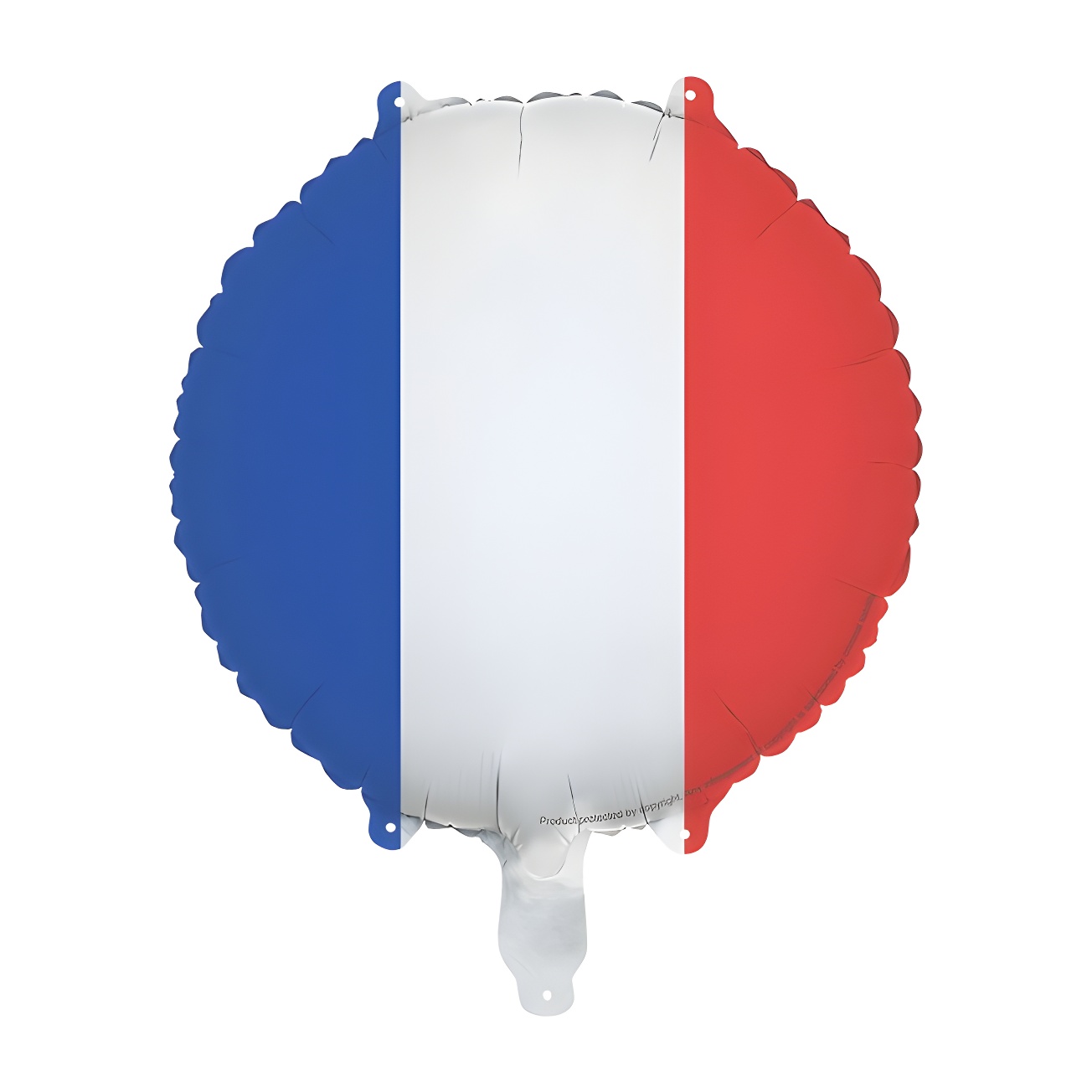 Balão foil com as cores da bandeira da França, perfeito para que o(a) senhor(a) acrescente um toque festivo a celebrações e eventos esportivos.