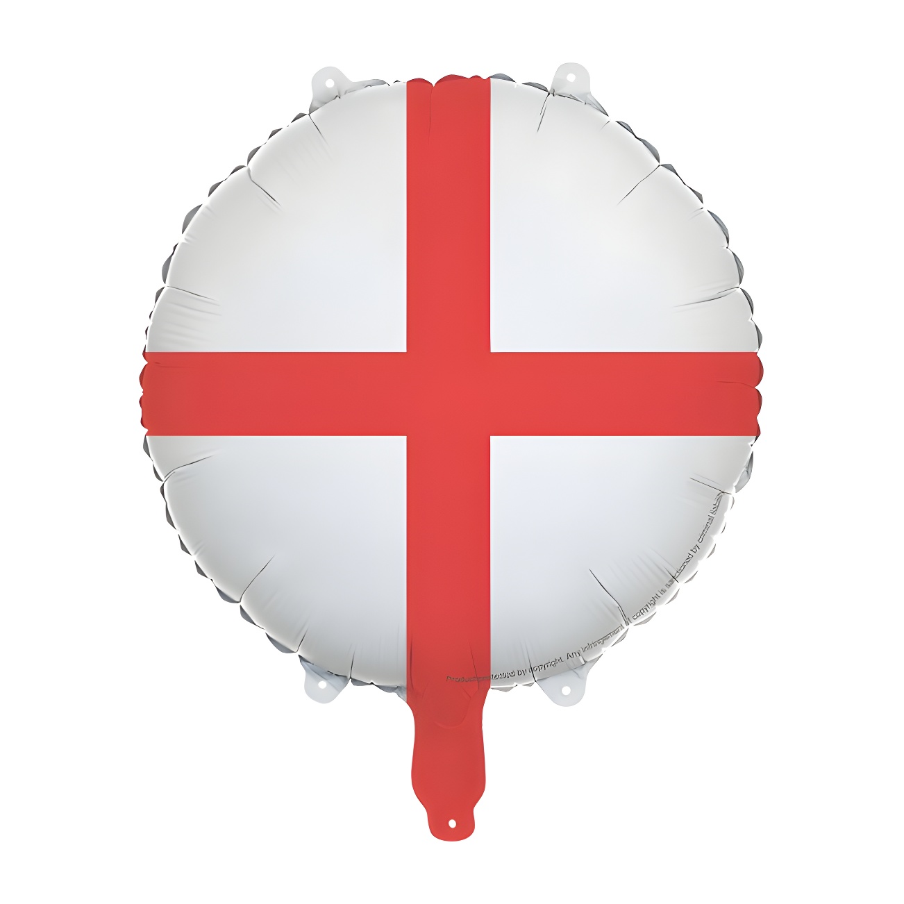 Balão foil com a icônica Cruz de São Jorge, concebido para que o senhor/a senhora demonstre apoio à seleção e aos torcedores ingleses. Diâmetro aproximado antes de inflar: 45 cm (18''), e aprox. 35 cm (14'') após o enchimento. Pode ser inflado com ar ou hélio, com válvula auto-selante e ganchos integrados para uma fixação e decoração fáceis.