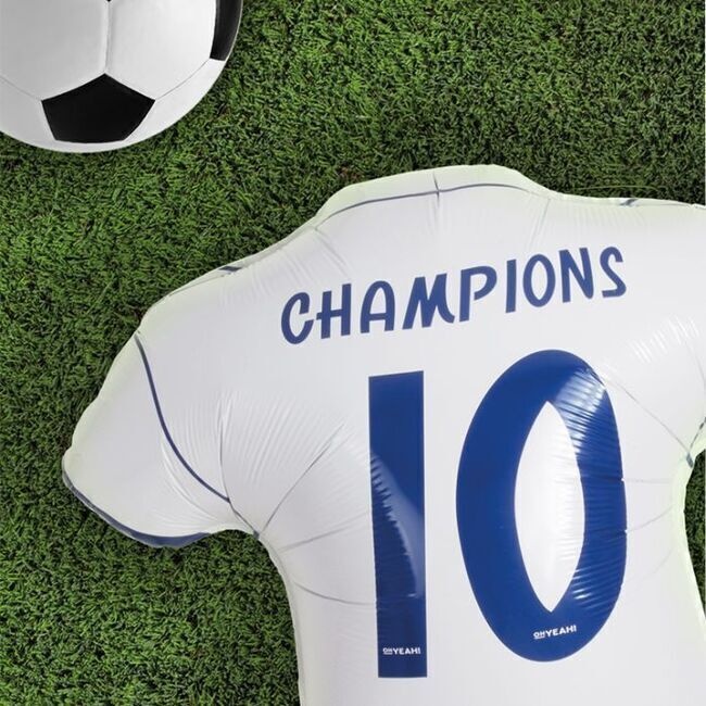 Interessante balão em forma de t-shirt de futebol para utilizar em festas e aniversários temáticos de futebol, quer como decoração suspensa quer para criar centros de mesa criativos