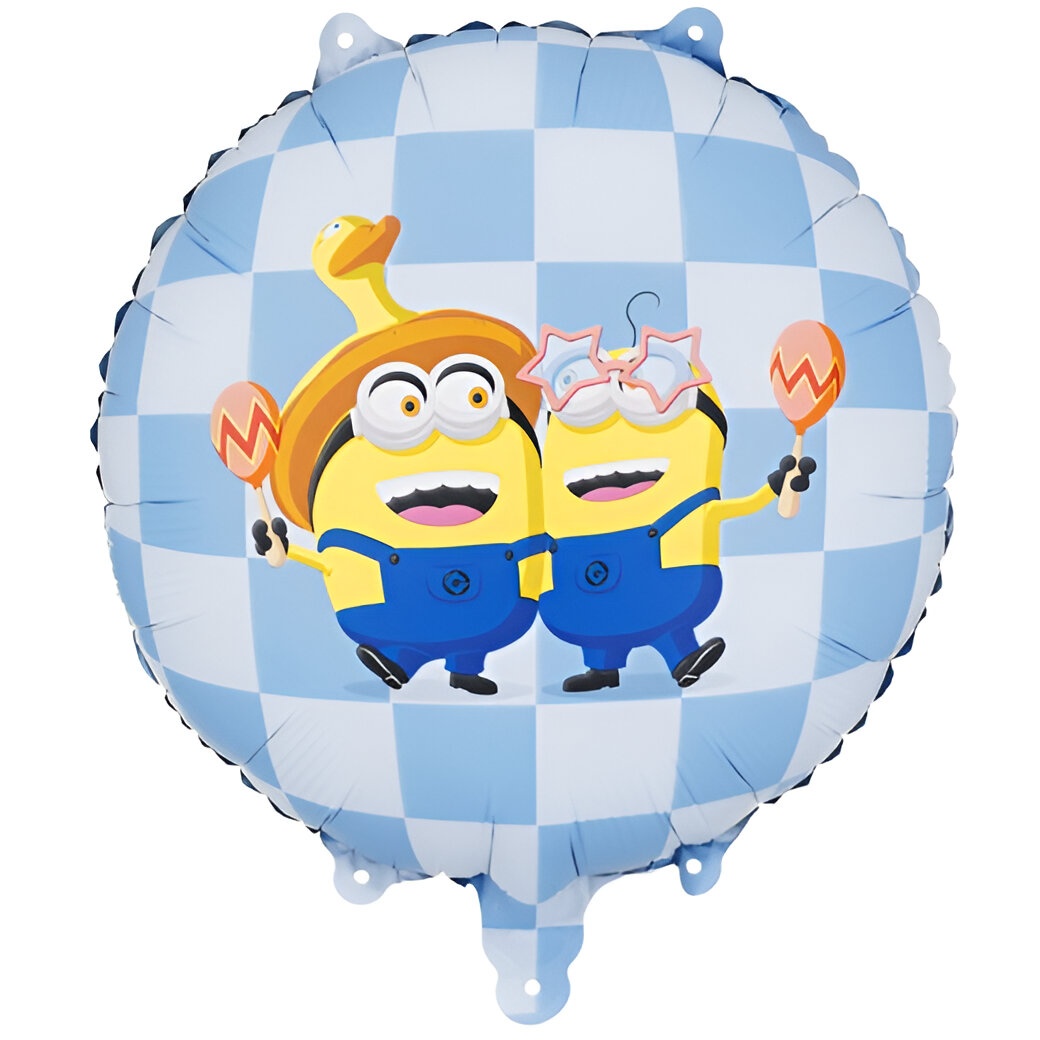Balão foil redondo com o divertido motivo dos Minions, ideal para decorar festas infantis e aniversários. Tamanho aproximado antes de inflar: 45 x 45 cm; tamanho após inflar: 35 x 35 cm. O senhor/a senhora pode inflá-lo com ar ou com hélio para acrescentar volume e movimento à decoração. Material brilhante e resistente que preserva forma e cor.