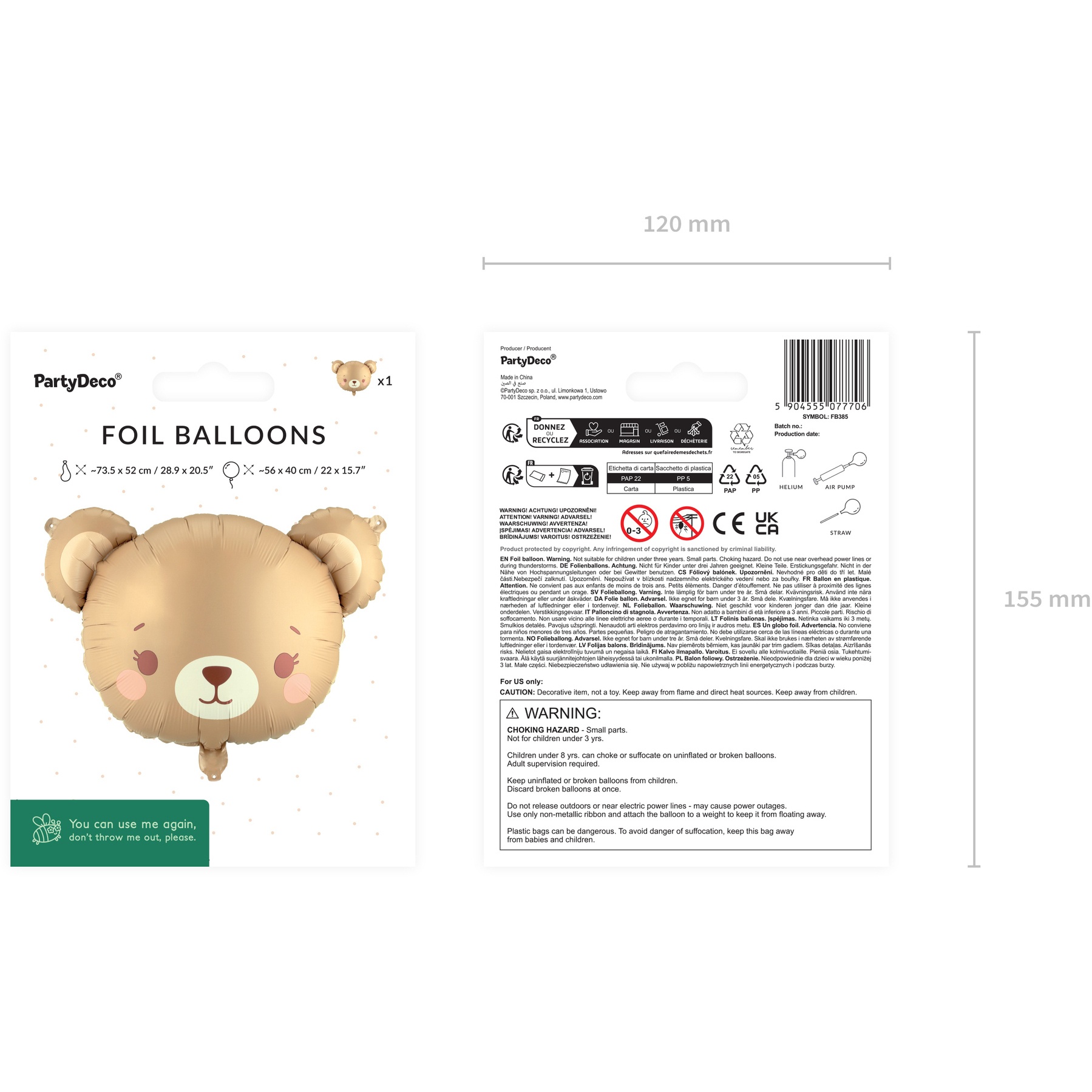 - Material foil resistente que mantém o brilho e a forma durante a festa.