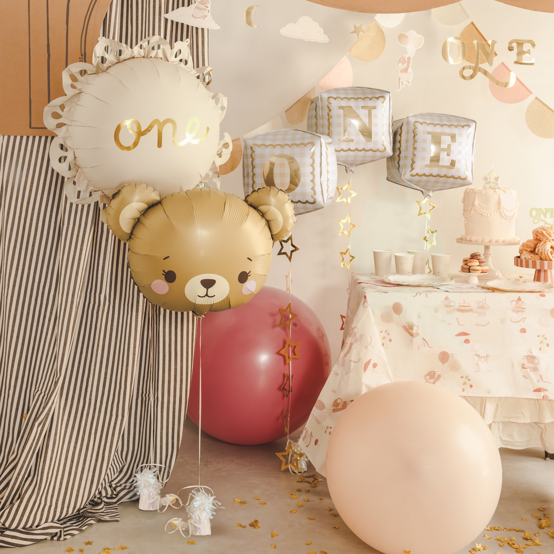 - Perfeito para chás de bebê e aniversários infantis; combina com paletas neutras e tons pastéis.