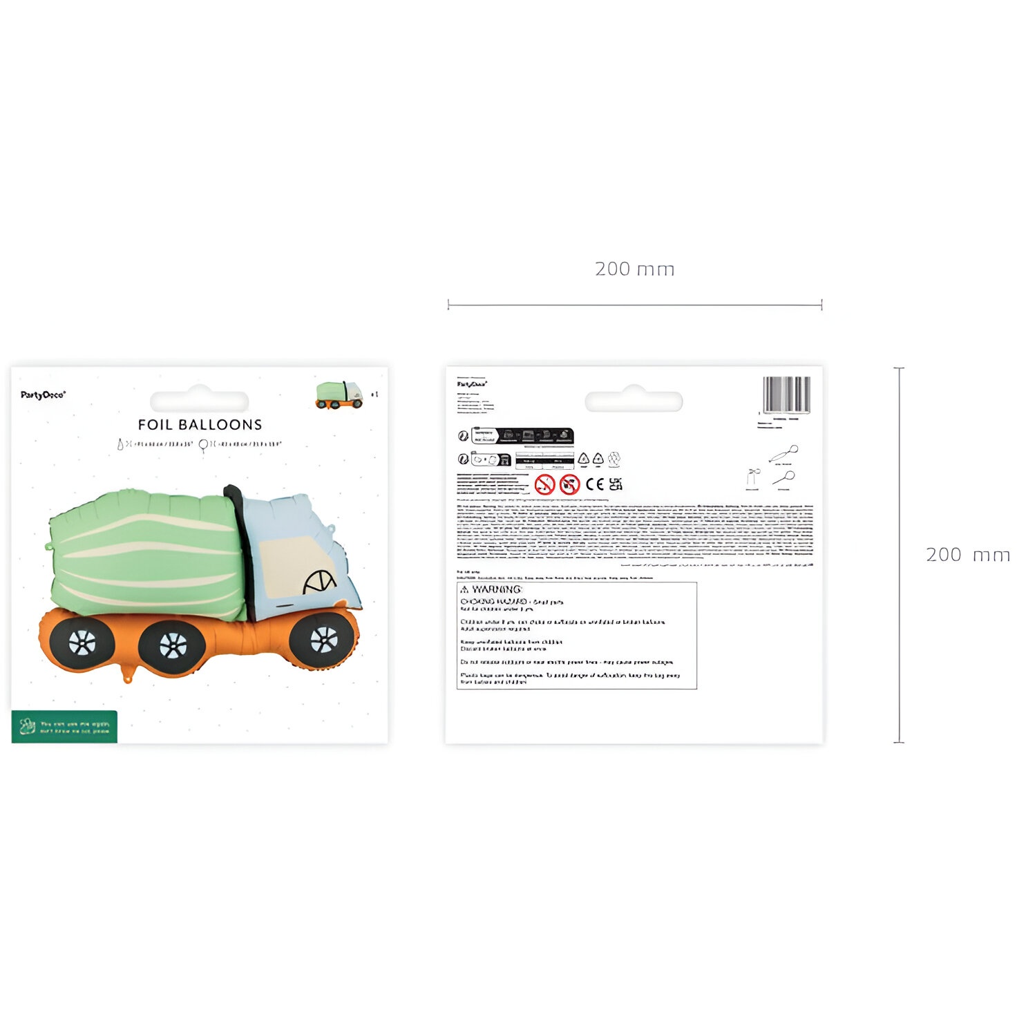 Balão foil com design de betoneira numa mistura de cores vivas que confere um toque divertido e temático às celebrações infantis. Tamanho aproximado antes de inflar: 91 x 66 cm; tamanho aproximado depois de inflar: 81 x 48 cm. Projetado para inflar com ar, a sua forma detalhada e acabamento metalizado valorizam qualquer decoração.