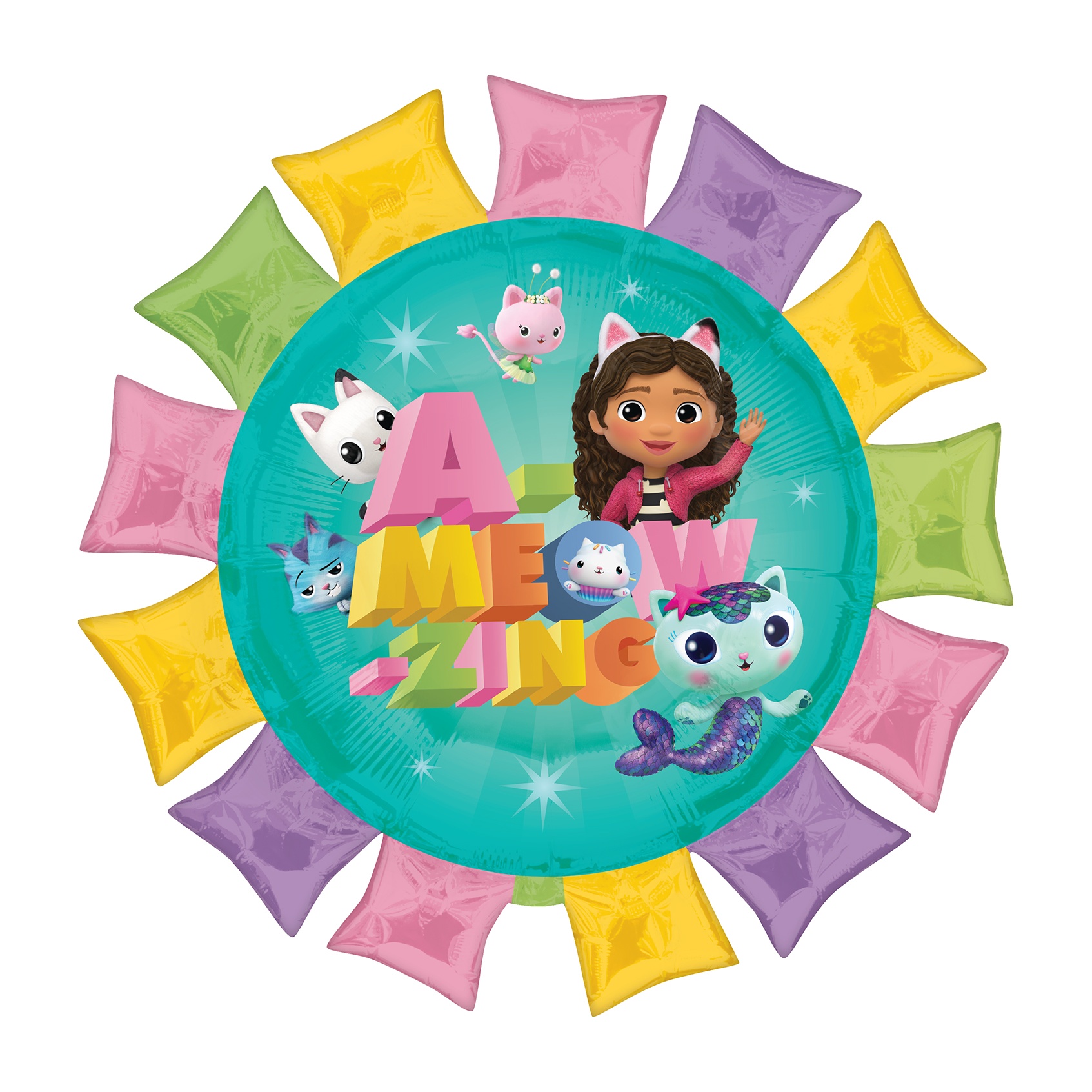 Balão foil com design oficial da Gabby's Dollhouse em um formato original de casa que adiciona cor e diversão à festa dos mais pequenos.