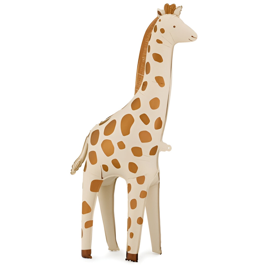 Balão girafa em tons bege claro e marrom, com um design alto e marcante pensado para ambientações infantis com temática de safári.