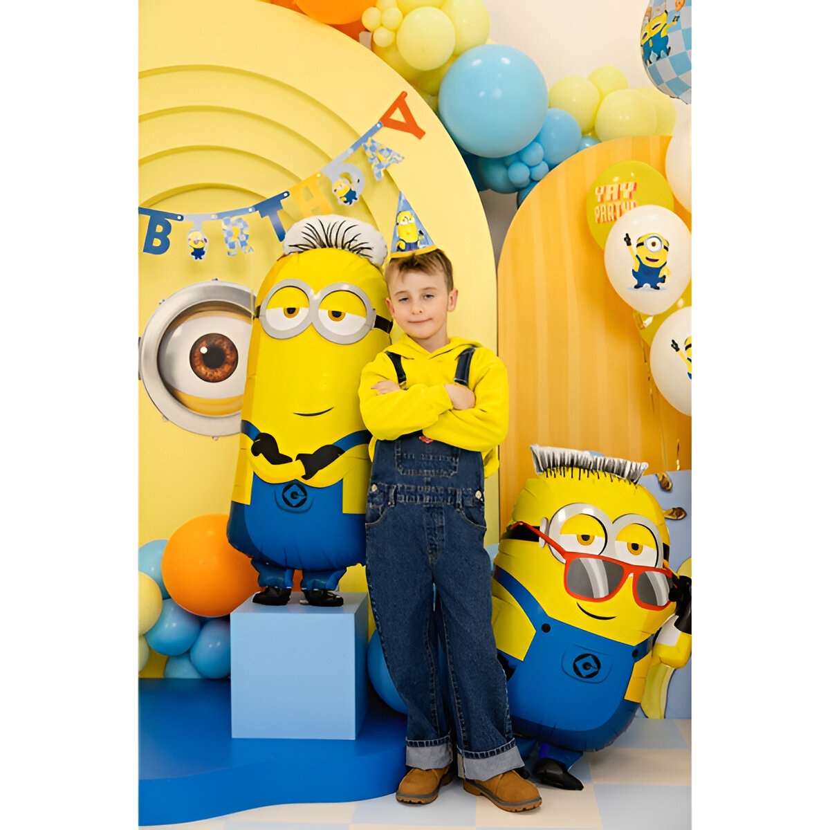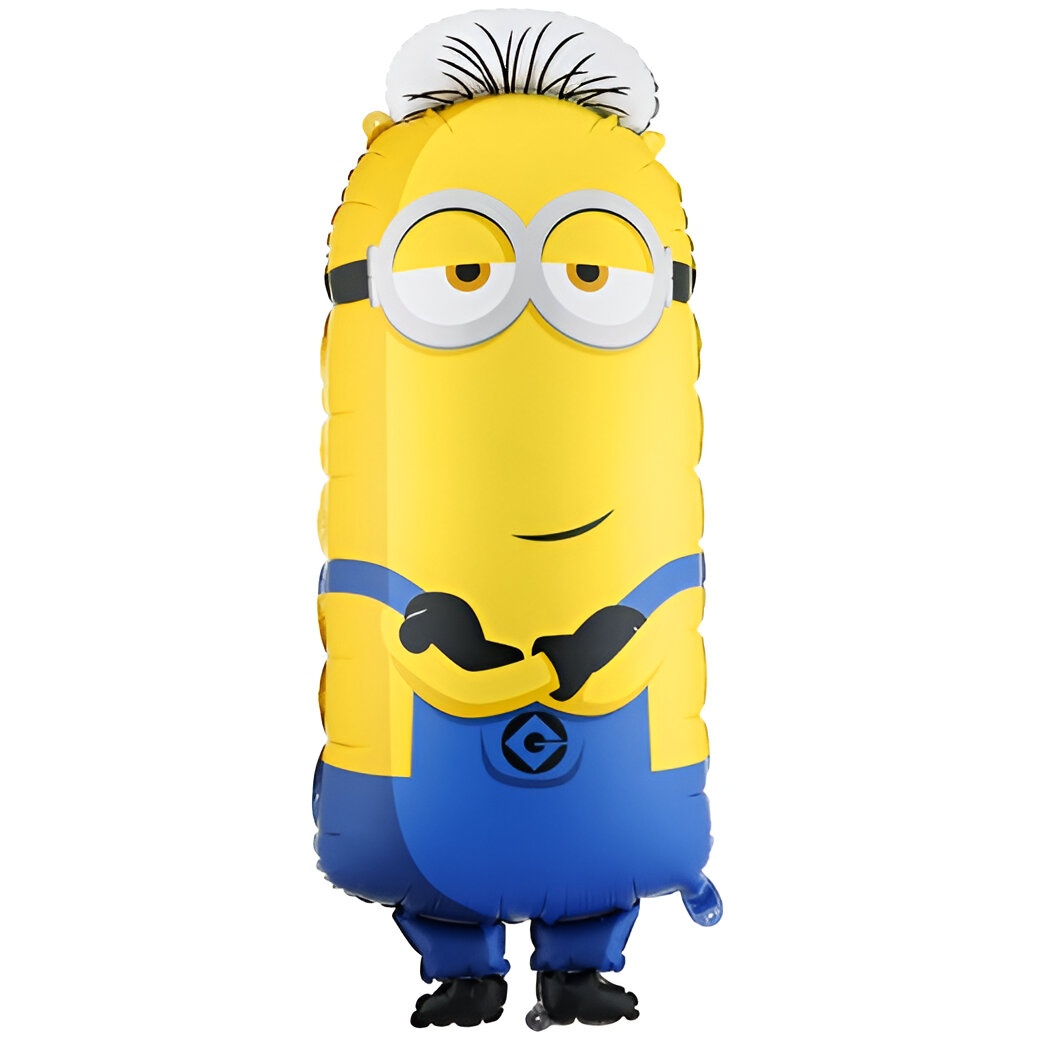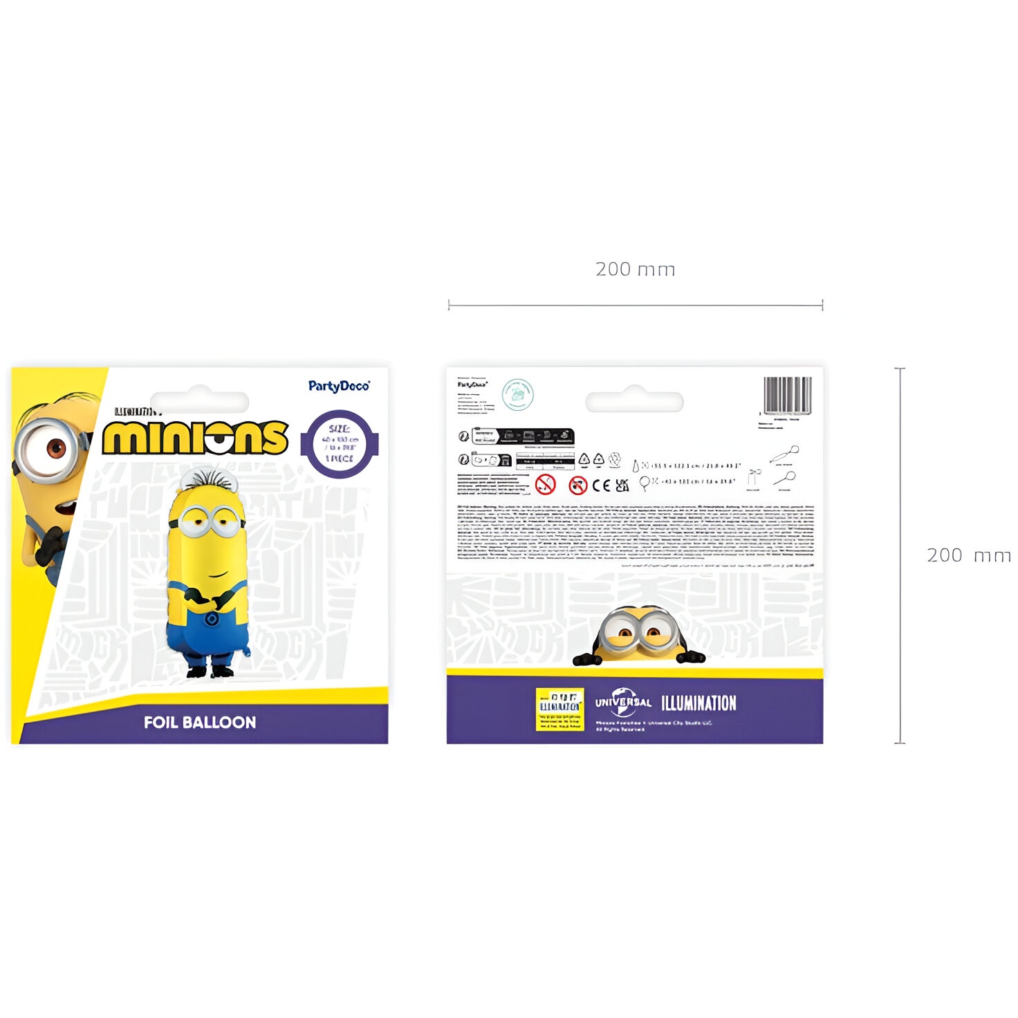 Balão foil em formato do Minion Tim, nas cores azul e amarelo, com acabamento brilhante que dá alegria a qualquer celebração infantil. Antes de ser inflado mede aproximadamente 55,5 x 122,5 cm e, uma vez inflado, atinge cerca de 40 x 100 cm. Pode ser inflado com ar ou hélio, conforme a necessidade; a sua válvula é auto-selante para um fecho rápido e seguro. Conta com ilhós integrados para pendurá?lo ou fixá?lo com facilidade e manter a decoração estável.