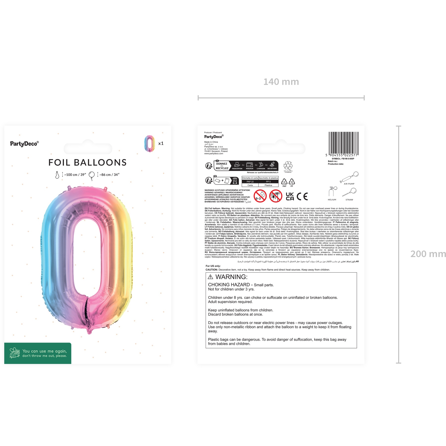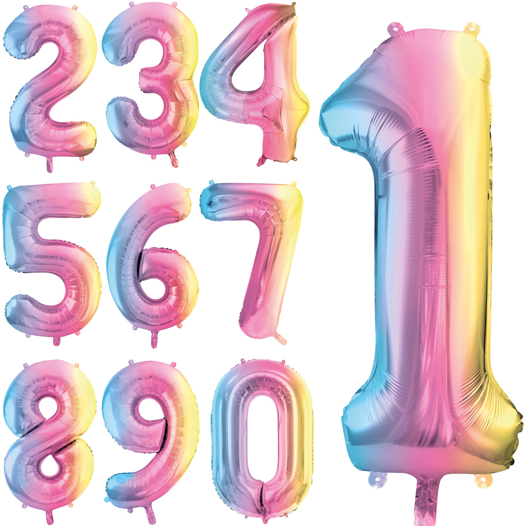 Balão Número Arco-íris Pastel de 86 cm - PartyDeco - 1 unidade