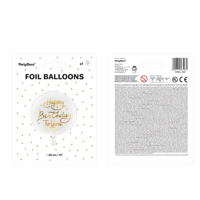 Balão redondo Happy Birthday To You 35 cm - PartyDeco