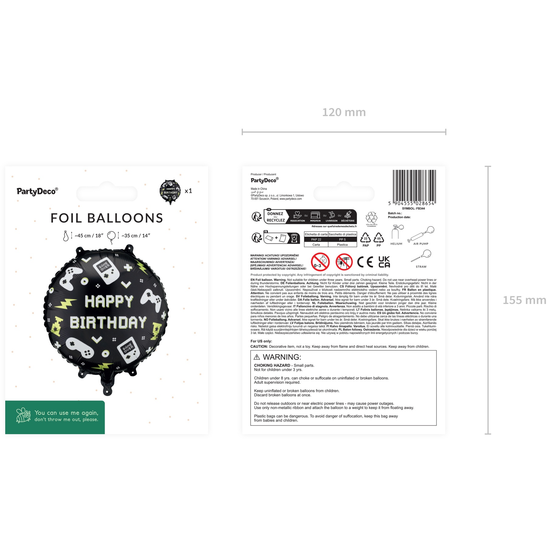 Mantener alejado de fuentes de calor, llamas abiertas y estufas; el globo puede explotar al calentarse y provocar lesiones.