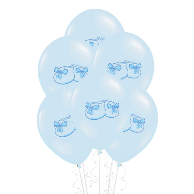 Enfeite a decoração do seu chá de bebé com estes balões decorados com botinhas de bebé.