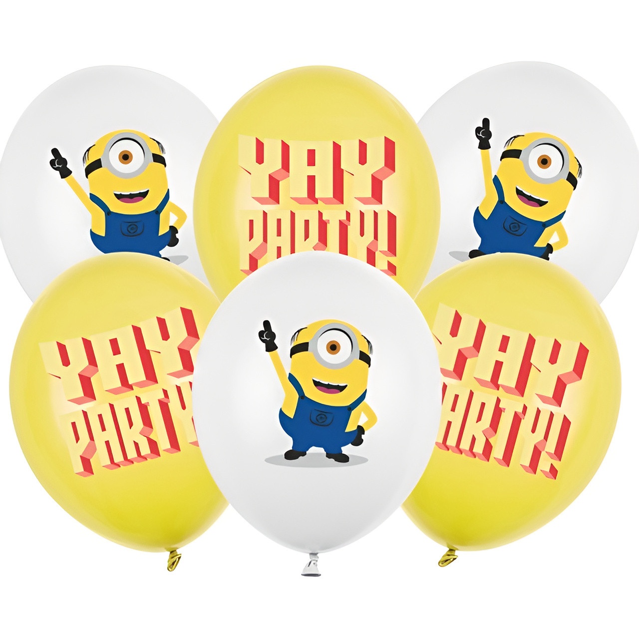 Strong Balloons Minions são balões impressos frente e verso com os populares personagens Minions e a mensagem "Yay Party!" em cores pastel. Cada balão tem 30 cm de diâmetro quando inflado, com um design alegre em tons branco e amarelo mel que traz diversão a qualquer celebração infantil. Ideais para decorar aniversários, compor centros de mesa e dar um toque divertido e reconhecível aos cantinhos da festa.