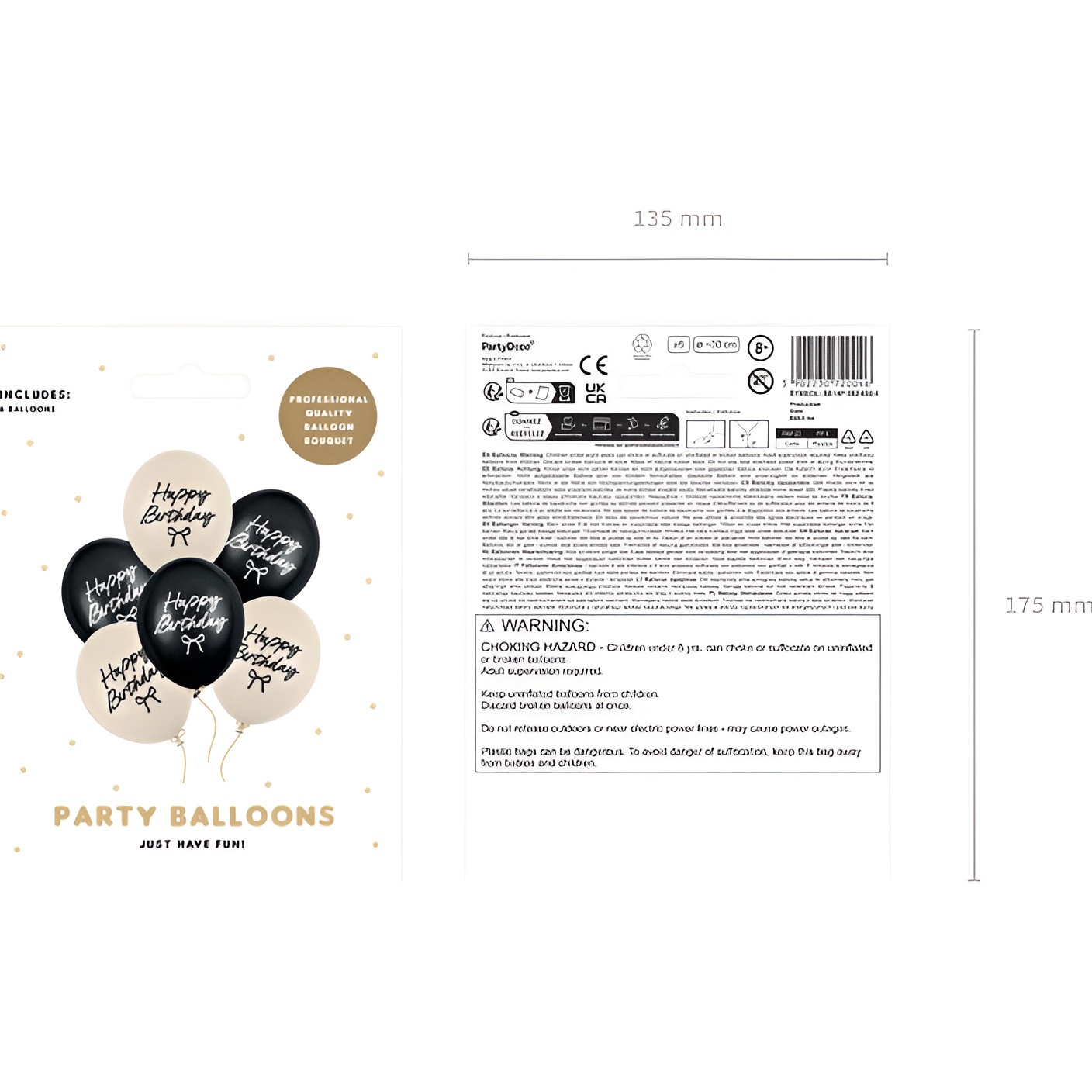 Balões de látex Elegant Happy Birthday de 30 cm - 6 unidades