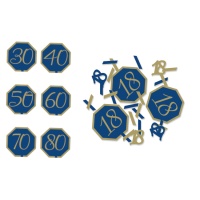 Uma bela combinação de azul e dourado para decorar as festas. Pode escolher o número certo para a sua festa.