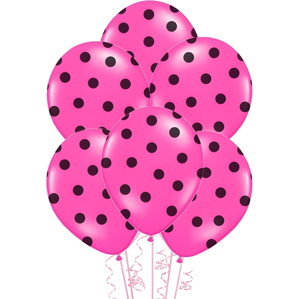 Este pack contém 6 balões de látex com bolinhas pretas, perfeitos para combinar com qualquer festa.