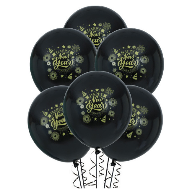 Balões de látex pretos com "Feliz Ano Novo" - 10 unidades