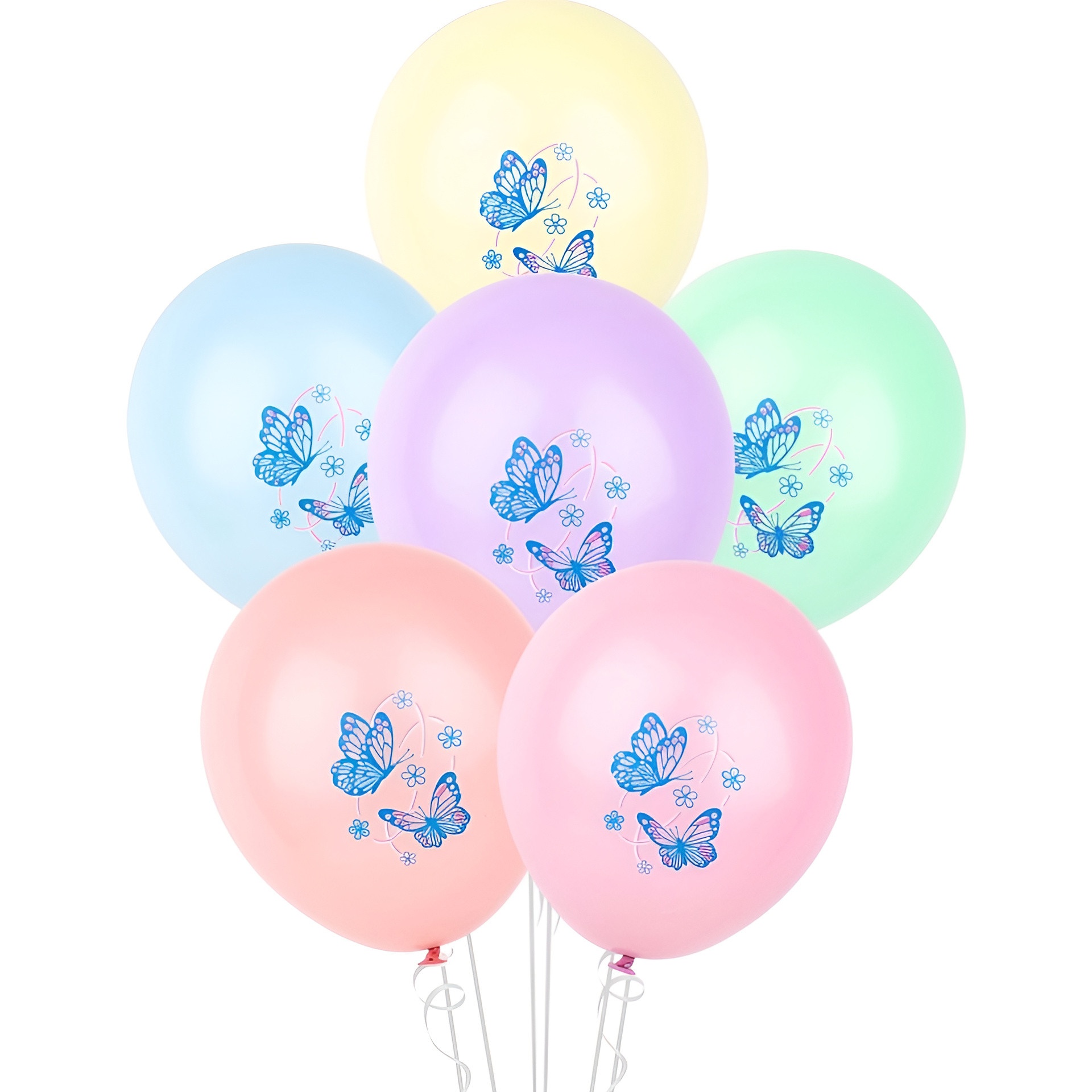 Balões de látex em tons pastel com estampa de borboletas - 30 cm - 6 unidades