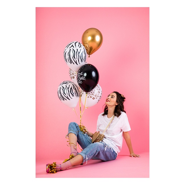 Balões de látex brancos com estampado de zebra. Combine-os com balões de outras cores e crie uma combinação espetacular.