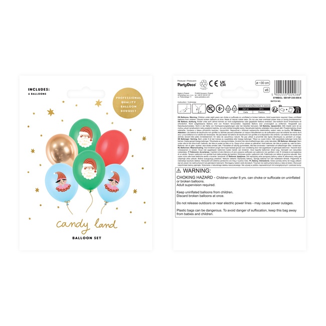 Balões de látex de Natal Candy land 30 cm - PartyDeco - 6 unid.