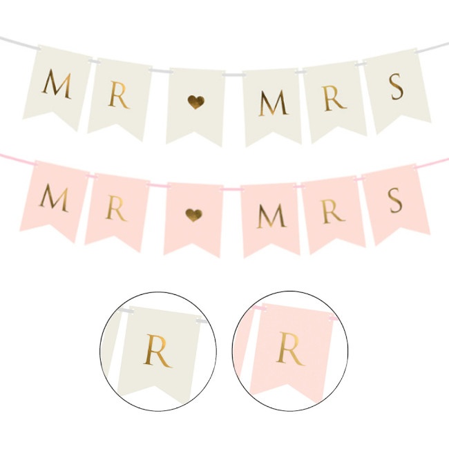 É constituída por uma espécie de bandeiras em cartão. Cada uma contém uma letra do Sr. e da Sra. com um coração no meio.
