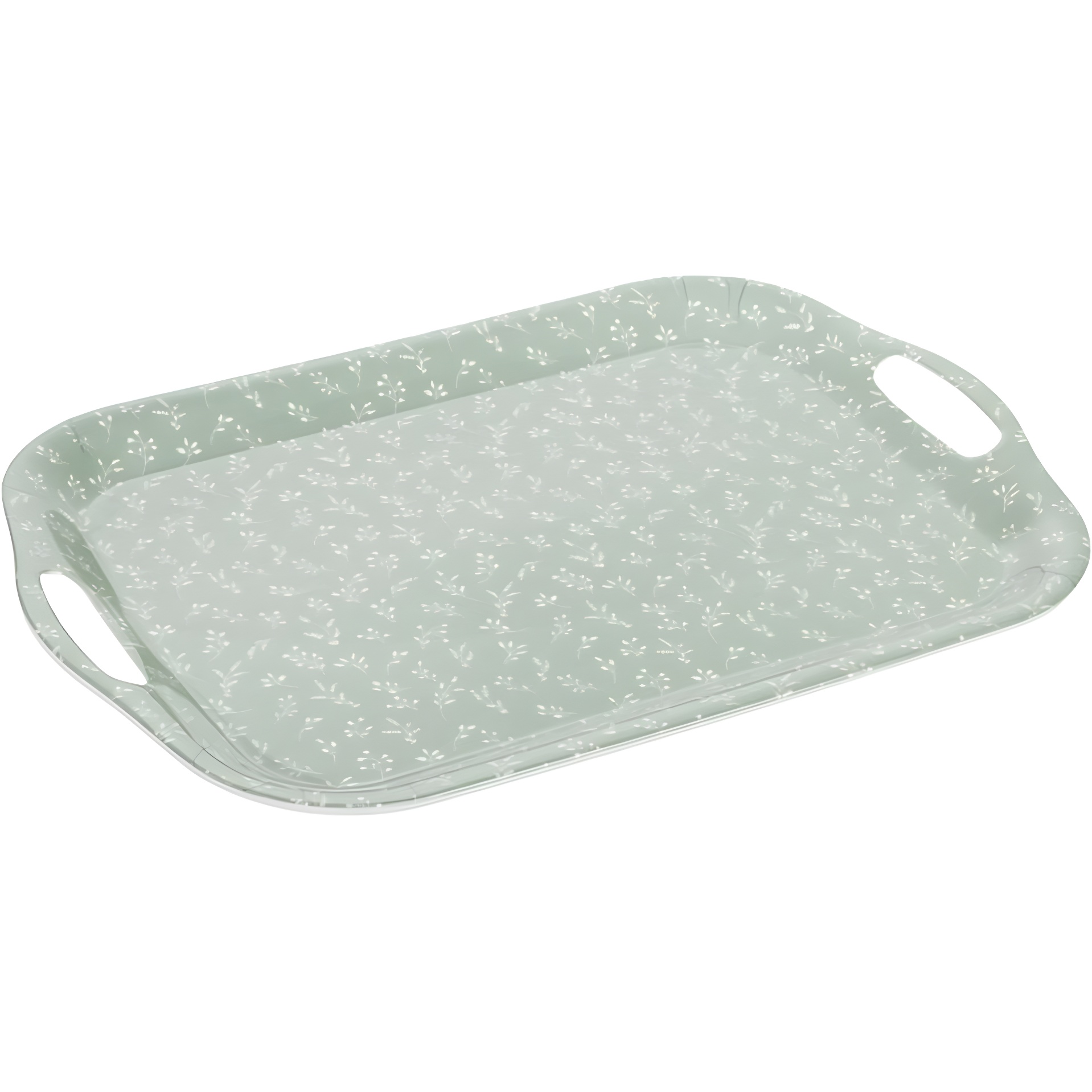 Bandeja de design elegante com estampado de folhas verdes que confere um toque natural a qualquer mesa. A sua construção leve facilita o transporte, mantendo a robustez necessária para o uso diário.