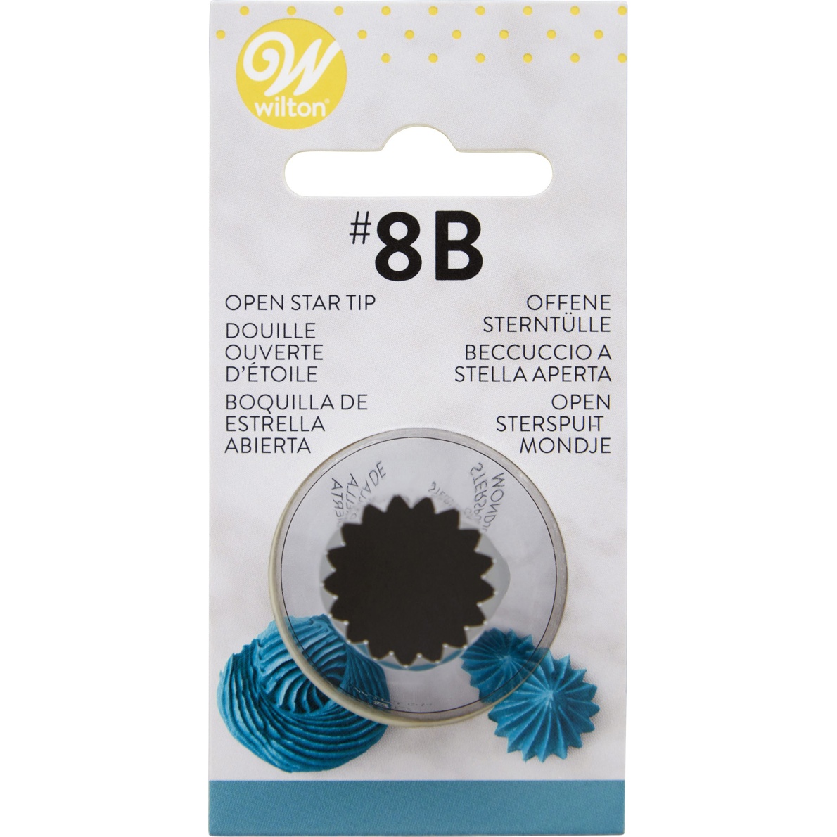 O bico Wilton Open Star 8B permite criar estrelas, rosetas e flores com acabamento profissional. Seu desenho de pontas abertas proporciona texturas definidas e detalhes delicados em buttercream e glacês.