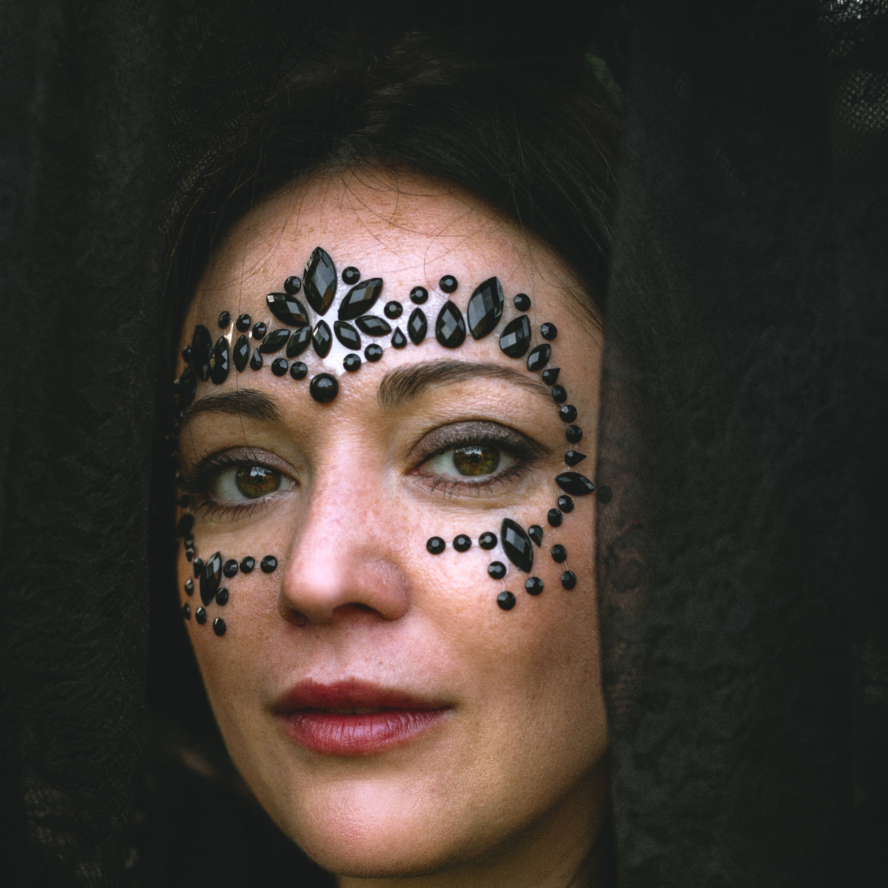 Bijutaria adesiva facial preta redonda e em forma de lágrima