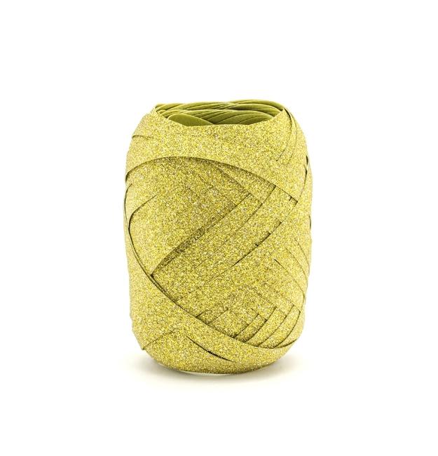 Fita colorida apresentada num carretel de ráfia de 10 m, com a qual pode decorar tudo o que se lembrar, como os frascos de uma mesa de doces.