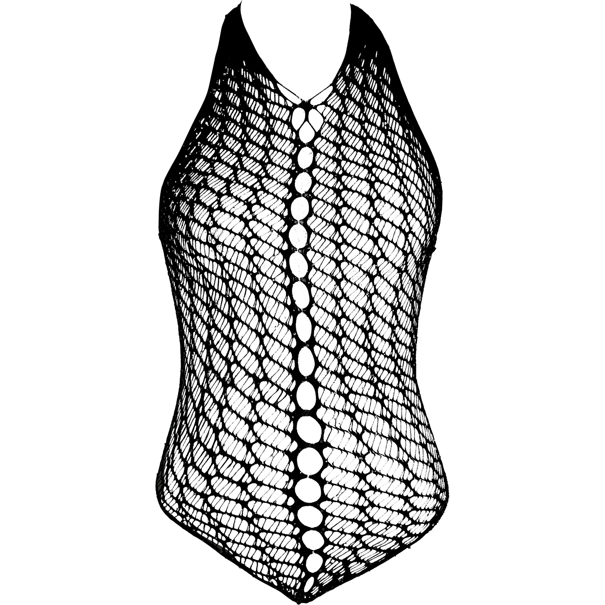 Body em rede na cor preta com detalhe em pedraria, desenhado para valorizar a silhueta em saídas noturnas e ocasiões festivas. O tecido elástico de poliamida e elastano proporciona um ajuste justo e confortável, conferindo um acabamento sensual e favorecedor. Os detalhes brilhantes adicionam um toque glamouroso, ideal para combinar com lingerie ou peças sobrepostas. Peça versátil pensada para looks de noite, clubes e festivais.
