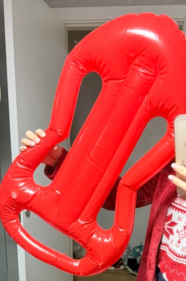É um flutuador insuflável vermelho perfeito para completar o modelo do nadador-salvador que propomos para a despedida de solteiro.