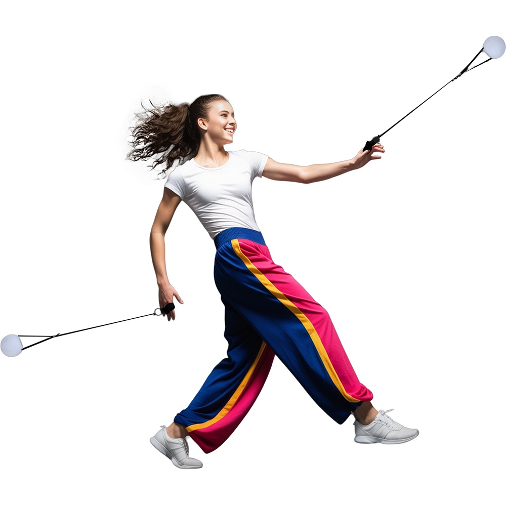 - Desenvolvida especificamente para poi e flow arts: ideal para espetáculos, treinos e animação.