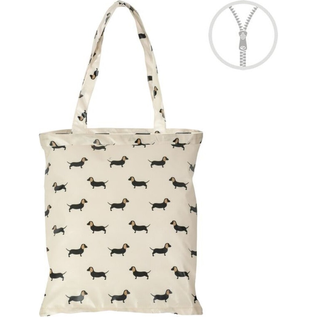 Bolsa de tecido impermeável com fecho de correr - estampa de teckels