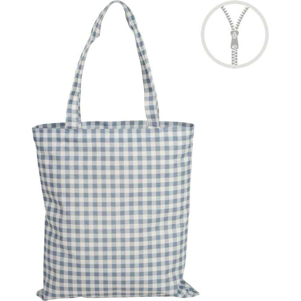 Bolsa com padrão vichy em tons de azul que une um estilo clássico à funcionalidade moderna. Possui zíper para manter o conteúdo protegido e tecido impermeável que evita a entrada de água. As alças longas facilitam levá-la ao ombro e o seu tamanho generoso permite transportar toalhas, acessórios e muito mais com conforto.