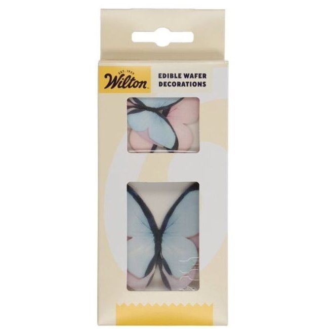 - Estas borboletas comestíveis de oblea vêm em delicados tons pastéis e cada embalagem contém borboletas grandes e pequenas.