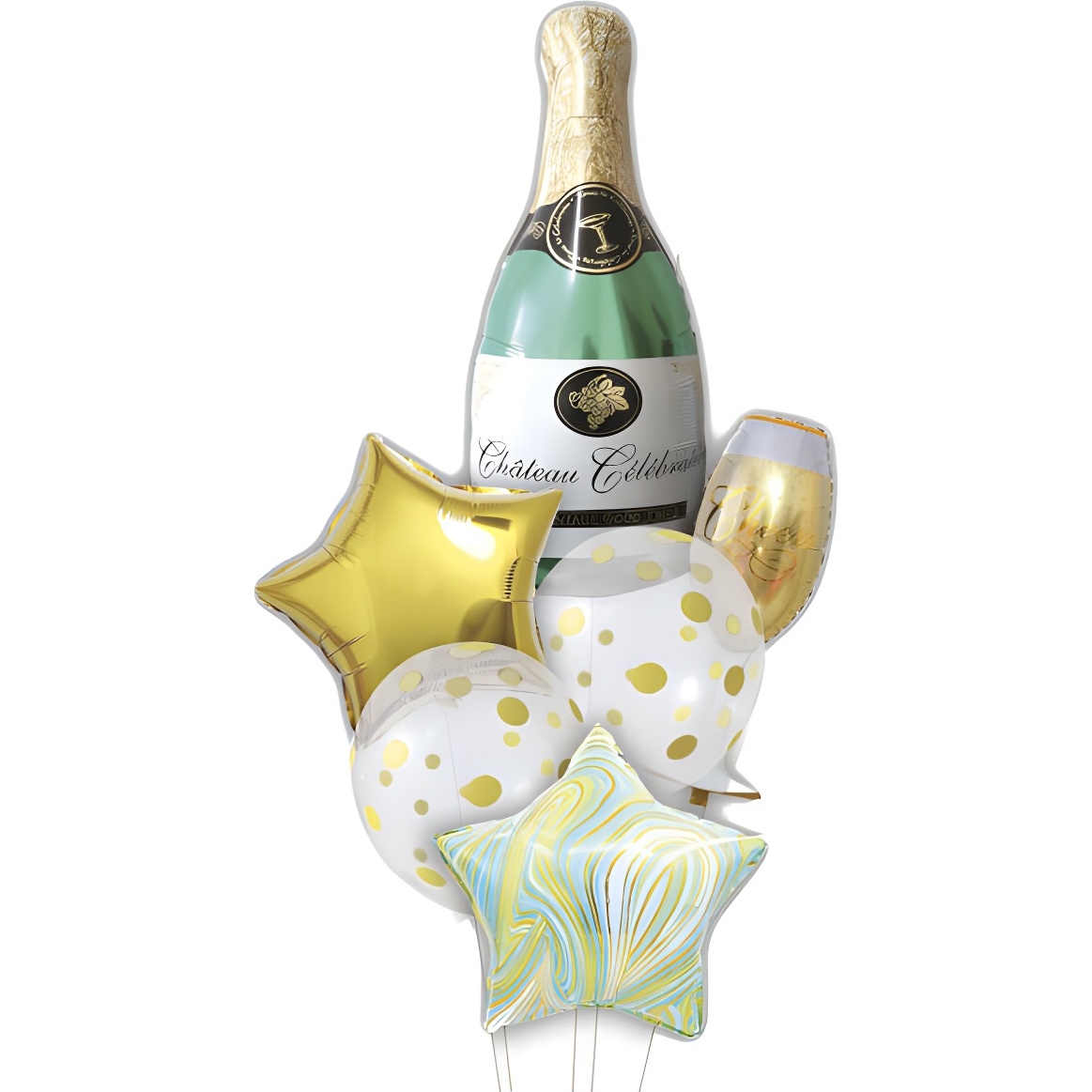 Balão de garrafa Cava dourado e verde - 6 unidades