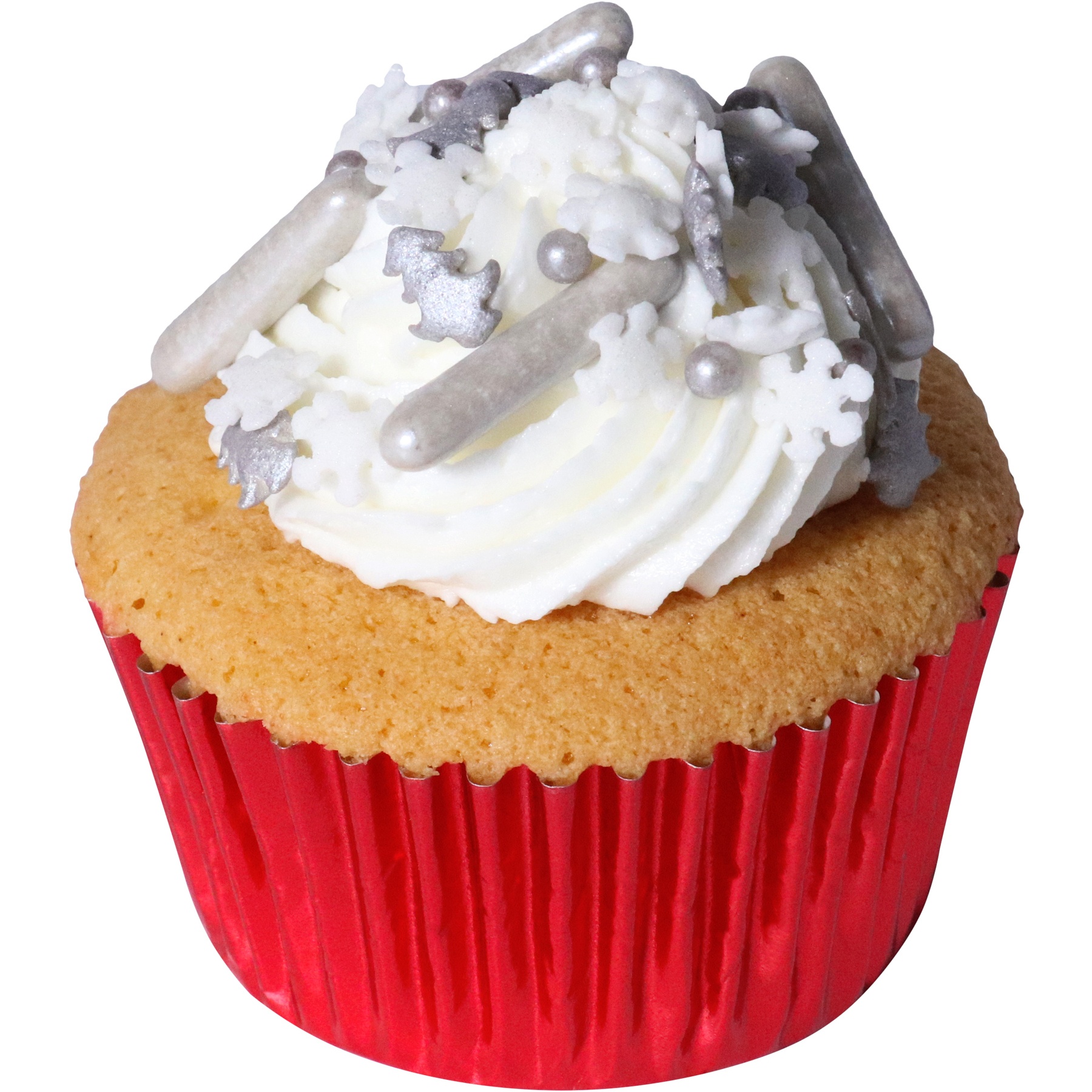 - 160g de granulado numa alegre mistura de estrelas, flocos de neve, pérolas e jimmies, com um tema prateado e branco.
