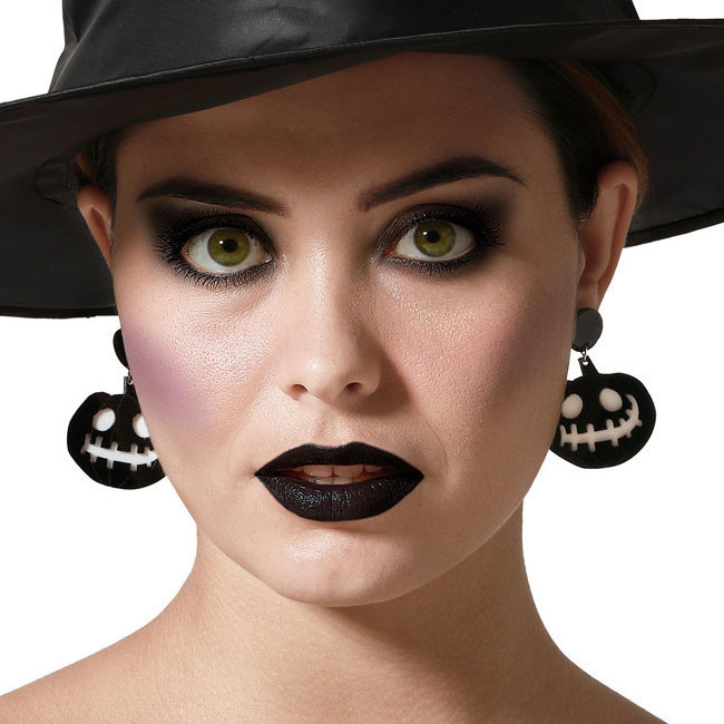 • Par de brincos em forma de abóbora preta. Acessório chamativo e temático.