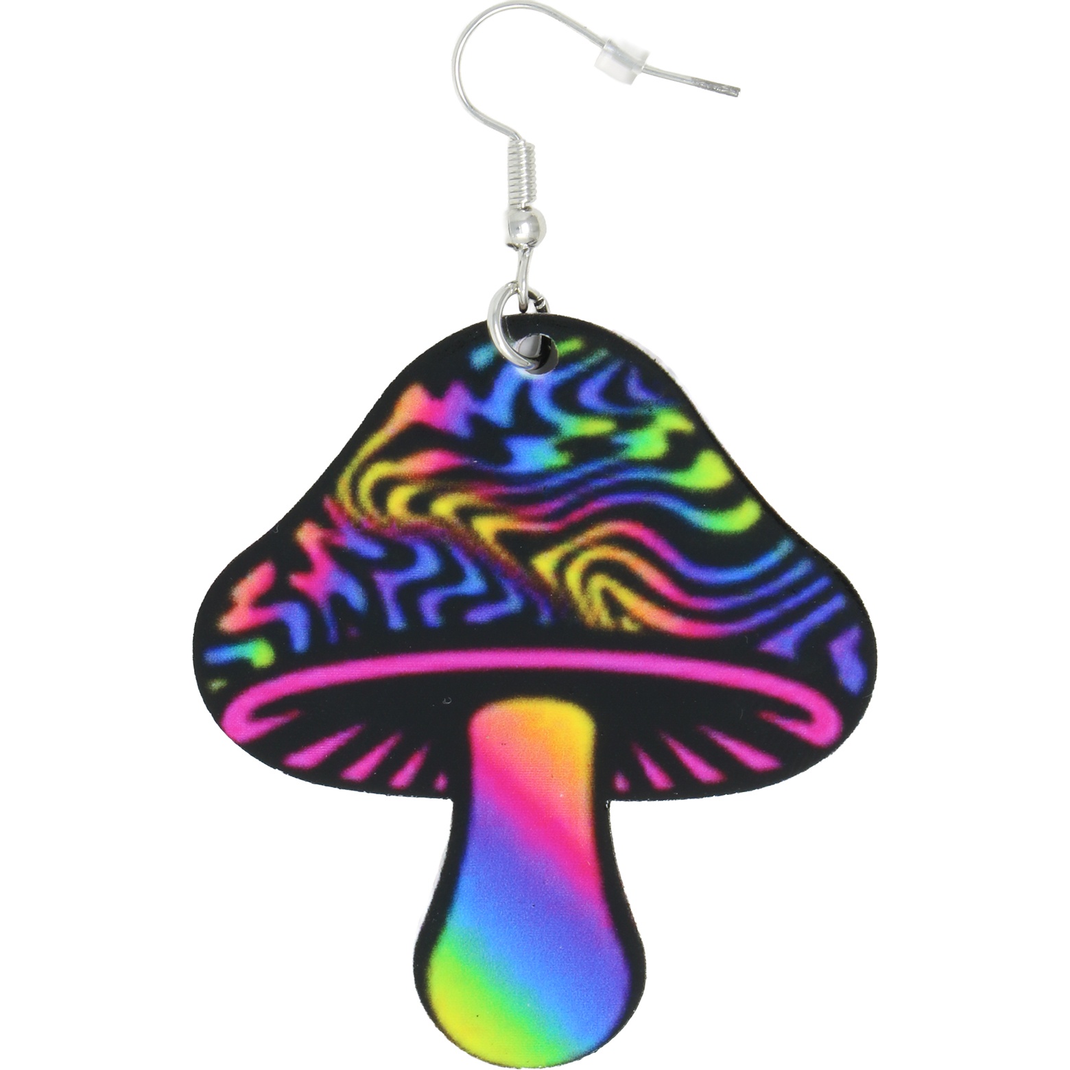 Brincos com desenho de cogumelo em cores psicodélicas, pensados para dar um toque ousado e alternativo ao seu visual. Fabricados em metal e PVC, combinam resistência e leveza para uso confortável. O motivo vibrante e os tons néon tornam estes brincos uma peça de destaque em looks de inspiração alternativa e festiva. Design com gancho clássico que facilita a colocação.
